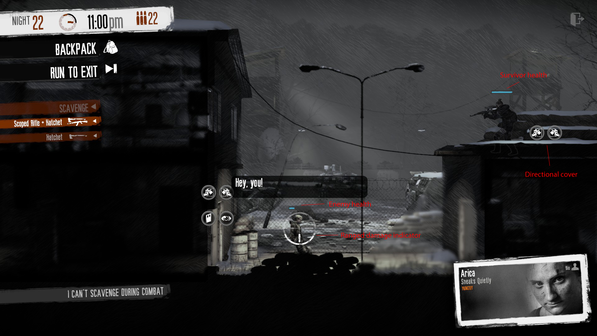 Although he isn t visible there is a sniper across the way firing at anyone who ventures into the area.